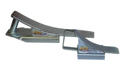 A wheel stop ( Drag shoe, Rail Skid or Track Skate) to hold a car steady on the track